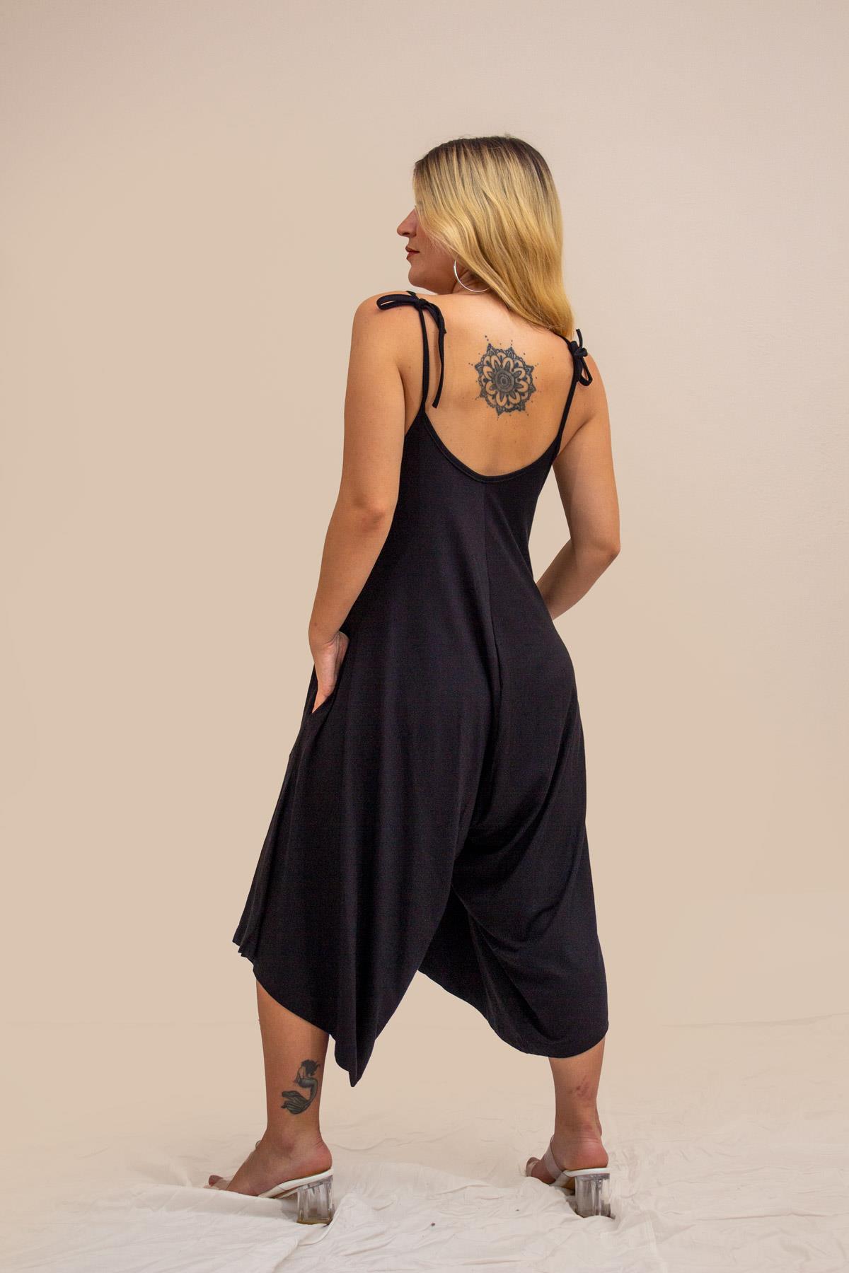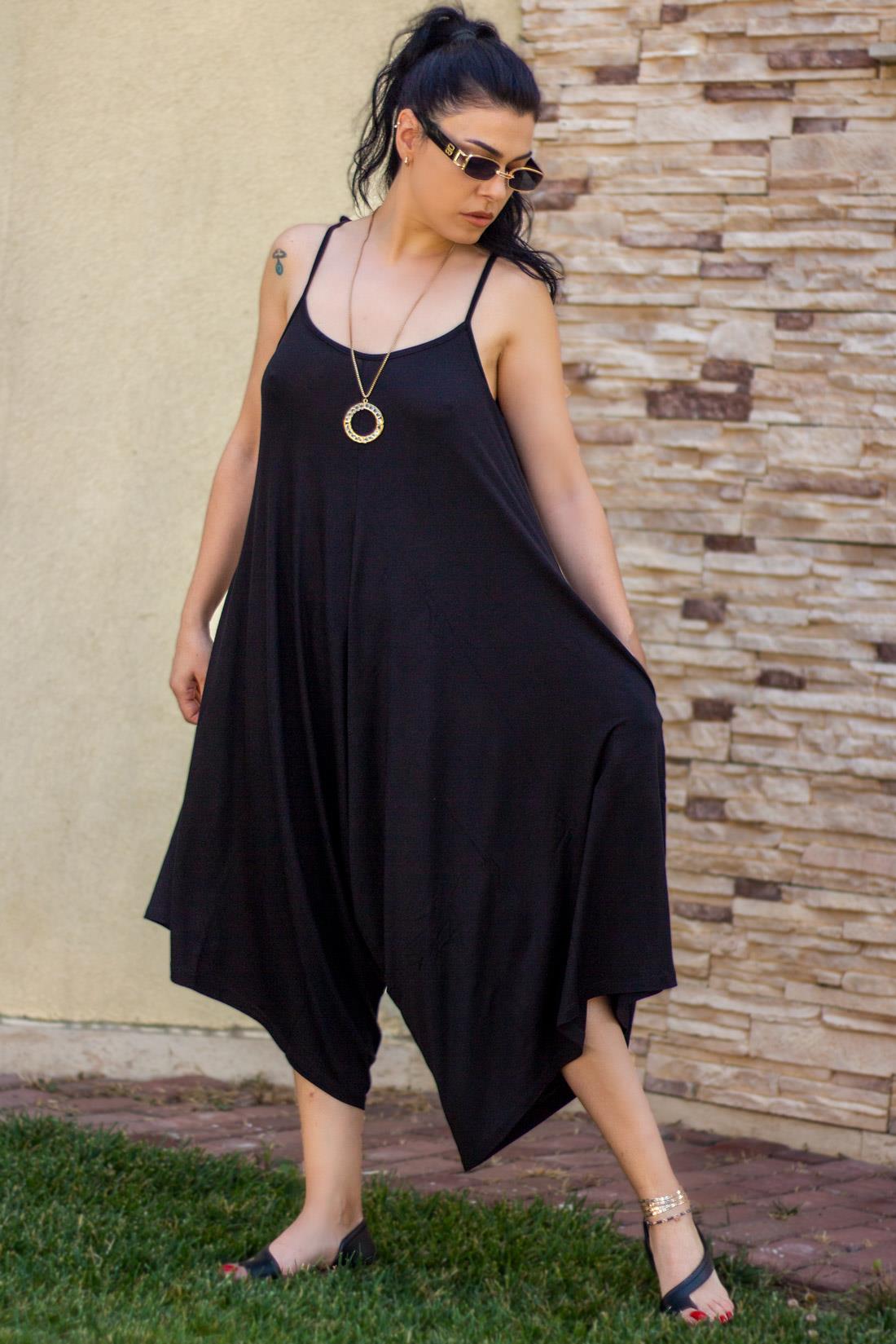 Kahve Askılı Cepli Salaş Rahat Kadın Şalvar Tulum Elbise 22KELBASSA