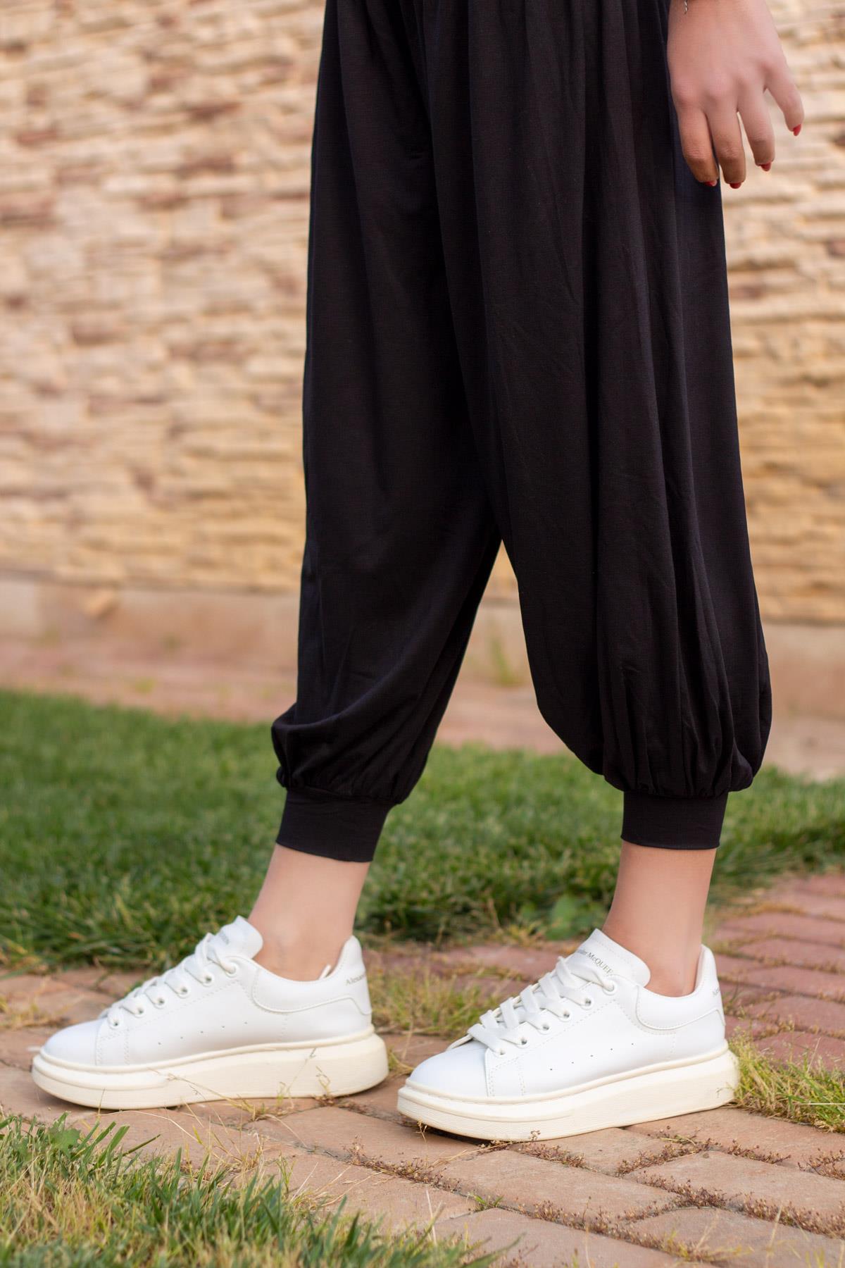 | Etiketler | Siyah Beli Lastikli Yanları Büzgü Detay Rahat Kadın Şalvar 22KPNTKVAR |